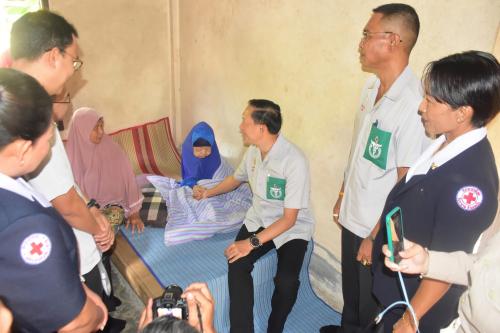 จากนั้น ผู้ว่าราชการจังหวัดนราธิวาส ได้มอบถุงยังชีพเหล่ากาชาดจังหวัดนราธิวาส ให้แก่ผู้ด้อยโอกาสในพื้นที่ จำนวน 50 ชุด และถุงยังชีพจากอำเภอแว้ง จำนวน 50 ชุด และมอบถุงยังชีพจากกรมป้องกันและบรรเทาสาธารณภัย ให้แก่ผู้ประสบอุทกภัยในพื้นที่ตำบลแว้ง อำเภอแว้ง จำนวน 200 ชุด พร้อมพบปะให้กำลังใจผู้ประสบภัย