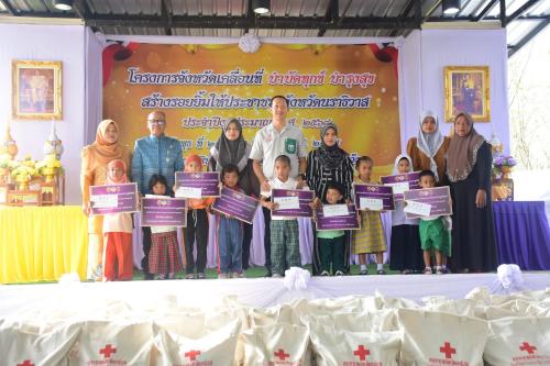 ทั้งนี้ ผู้ว่าราชการจังหวัดนราธิวาส ได้มอบทุนอุปการะเด็กกองทุนพัฒนาเด็กชนบท ในพระบรมราชูปถัมป์ สมเด็จพระเทพรัตนราชสุดาฯ สยามบรมราชกุมารี ประจำปี 2568 จำนวน 10 ทุน , มอบเงินสงเคราะห์เด็กในครอบครัวยากจน จำนวน 10 ราย และมอบโฉนดเพื่อการเกษตร จำนวน 7 แปลง เนื้อที่ 21 ไร่ 1 งาน 44 ตารางวา และมอบต้นไม้ตะเคียนทอง ต้นพยอม ให้แก่เกษตรกร จำนวน 6 ราย และพบปะพูดคุยกับผู้นำท้องถิ่น ซึ่งได้มีการนำเสนอปัญหาความต้องการในพื้นที่และรับทราบปัญหาอุปสรรคของพื้นที่ โดยสภาพปัญหาของพื้นที่ เบื้องต้นผู้ว่าราชการจังหวัดนราธิวาส ได้กำชับให้หน่วยงานที่เกี่ยวข้องเร่งแก้ไขปัญหาและสำรวจพื้นที่ที่ประสบปัญหาต่างๆ เพื่อบรรเทาความเดือดร้อนแก่ประชาชนในพื้นที่